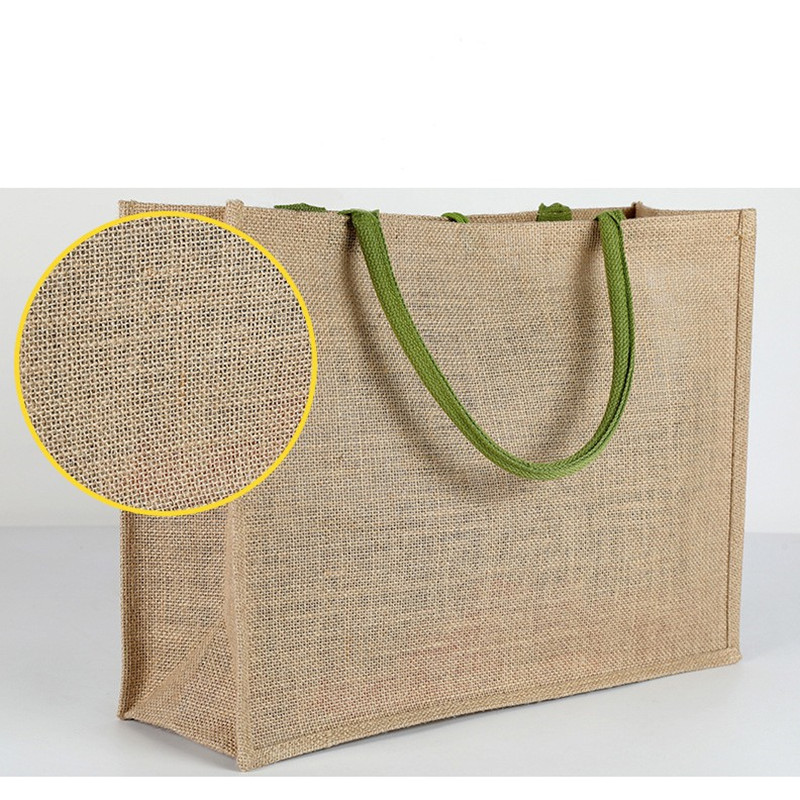 Tote bag is made of jute fabric and canva handle with reinforced stitching at the stress points, sturdy enough and can serves for a long time.